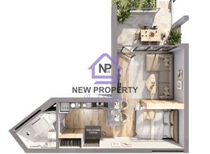 Елегантен ,едностаен апартамент с площ 30,02 кв.м. и се състои от дневна с кухня ,кът за спане ,баня с тоалетна ,коридор ,тераса .