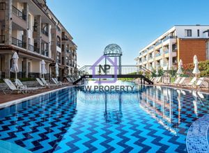 Двустаен тухлен апартамент, находящ се в луксозен комплекс с ниска такса поддръжка на втора линия от морето.
